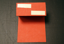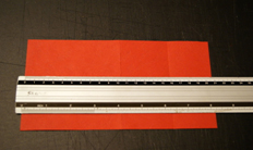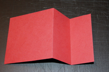 Фото 2. - зробіть позначки на відстані 10,5 см та 16 см (4 1/4" і 6 3/8"). Для того, щоб акуратно зігнути картон варто провести по ньому якимось твердим, але не ріжучим предметом. Це може бути звичайна кулькова ручка, котра вже не пише. Зробіть згини відповідно до малюнка - один всередину, інший назовні.