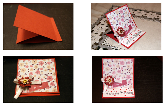 Фото 3. - на зовнішню сторону за допомогою двостороннього скотчу наклейте іншу основу, розміром 10,5 на 10,5 (4 1/4"), котру ви зможете вирізати із залишків вашого картону. Фактично основа для листівки готова. Декоруйте зовнішню та внутрішню сторони за власним смаком та насолоджуйтесь творчістю:)