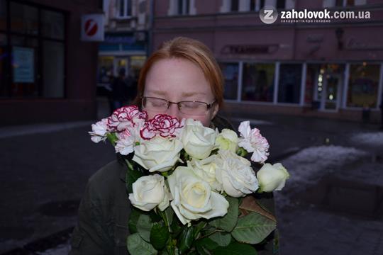 У перший день останнього місяця зими декільком ужгородцям пощастило «за просто так» отримати теплі побажання, щиру усмішку і… квітку.