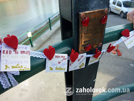 Крім того під скульптурою підвішені написи побажання кохання 20 мовами. Найбільш екзотичні- скандинавські. Таких складних, як от китайська, - немає .