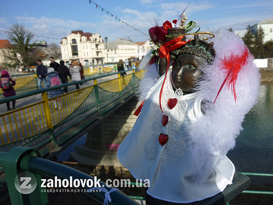 Сьогодні ,14 лютого, ужгородська міні-скульптурка маяк Свободка отримала перше у цьому році тематичне вбрання. «Дівчина» постала в образі ангелика до Дня всіх закоханих. Свободці начепили крила з пуху лебедя, вручили традиційний букет, цього разу з полуничкою посередині, а також спорудили над головою німб. Образ ангела вже був задіяний минулого року у серії перевтілень Свободки.