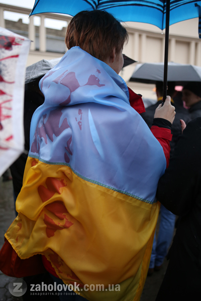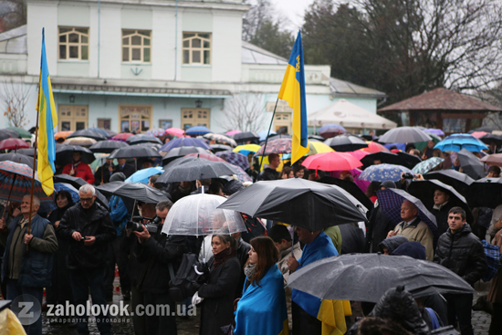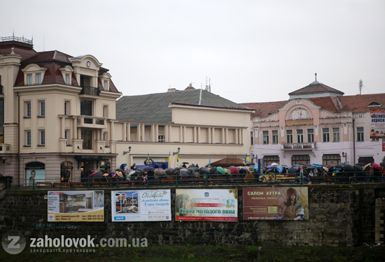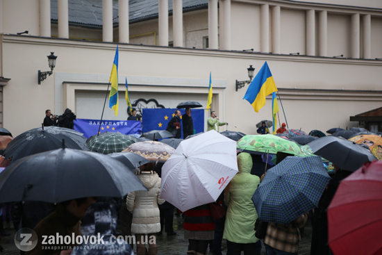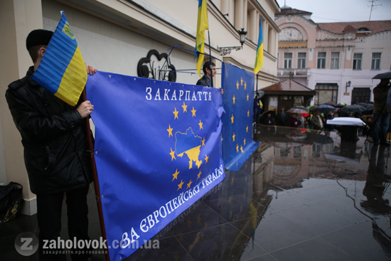Сьогодні в Ужгороді на Євромайдан зібралися близько 200 ужгородців. Під дощем з українською та європейською символікою мешканці міста прийшли на площу Театральну, щоб закликати президента підписати 28 листопада 2013 р. у Вільнюсі Угоду про асоціацію У країни з Євросоюзом.