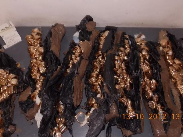 Сьогодні, 13 жовтня, чопські митники у пункті пропуску «Тиса» затримали громадянина Румунії, який намагався вивезти з України 349 чоловічих перснів вагою 6970 грам та 11 браслетів – 330 грам з металу жовтого кольору, заздалегідь прихованих водієм у підкрильниках та ніші подушки безпеки «BMW». Про це повідомила Вікторія Сенгетовська, прес-секретар Чопської митниці.