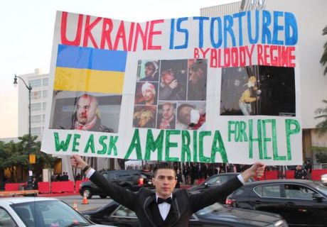 А у Лос-Анджелесі під час вручення кінопремій "Золотий глобус" Віталій Седюк розгорнув банер на підтримку України.