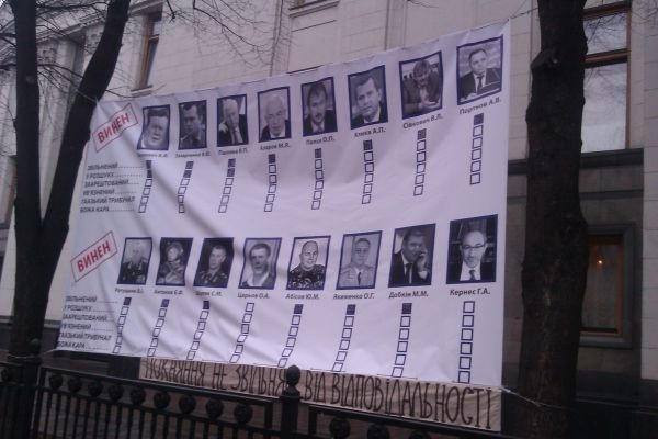 На плакаті, зокрема, згадуються Віктор Янукович, Віталій Захарченко, Віктор Пшонка, Микола Азаров, - пише Сегодня.