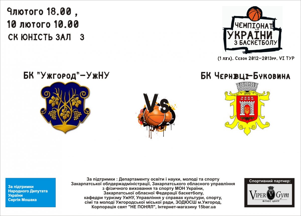 Змагання між БК «Ужгород-УжНУ» і БК «Чернівці-Буковина»  відбудуться 9 та 10 лютого в спорткомплексі «Юність» (зал №3).