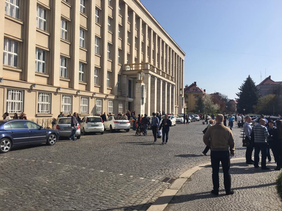 На "робочих місцях" залишилися закарпатські депутати та ЗМІ. Вхід у будівлю перекритий, туди нікого не впускають. Як повідомили у відділі комунікації ГУНП в Закарпатській області, дзвінок про замінування надійшов одразу після початку сесії, тобто близько 11.00.