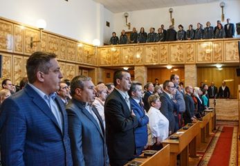 Під супровід камерного оркестру обласної філармонії, який виконав класичні твори українських і зарубіжних композиторів, поважна президія з числа голови облради Володимира Чубірка, його першого заступника Михайла Поповича, голови обласної державної адміністрації Василя Губаля та голови обласної організації Всеукраїнської асоціації голів обласних і районних рад Михайла Фединця зайняла місця.