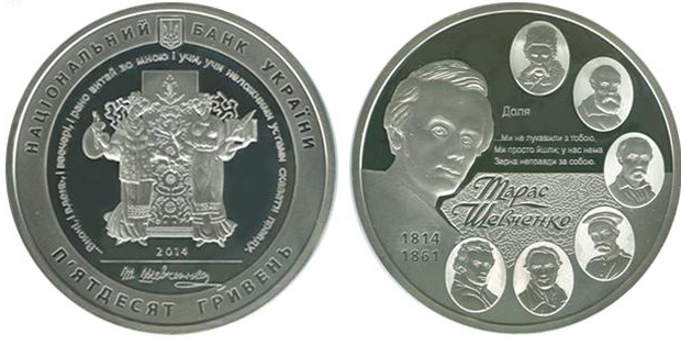 Національний банк України ввів в обіг пам’ятні монети номіналом 50 гривень та 5 гривень, присвячені 200-річчю від дня народження видатного сина українського народу, геніального поета, художника, мислителя, який зробив неоціненний внесок у духовну скарбницю людства, - Тараса Григоровича Шевченка.