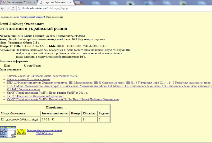 Віднедавна користувачі мережі Інтернет мають відкритий доступ до електронного каталогу Наукової бібліотеки УжНУ, яка є найбільшою на Закарпатті (півтора мільйона примірників книг).