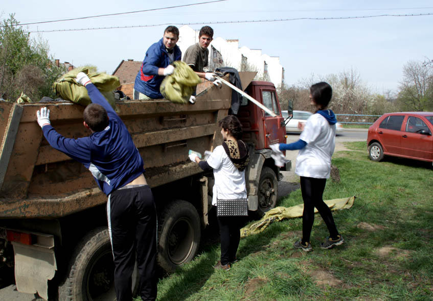 Чотири команди по 25 студентів розійшлися в різних напрямках, аби охопити максимально велику територію. Робота була злагодженою: легшу, делікатнішу довіряли дівчатам, а от мішки носити, діставати сміття з важкодоступних місць доводилося хлопцям.