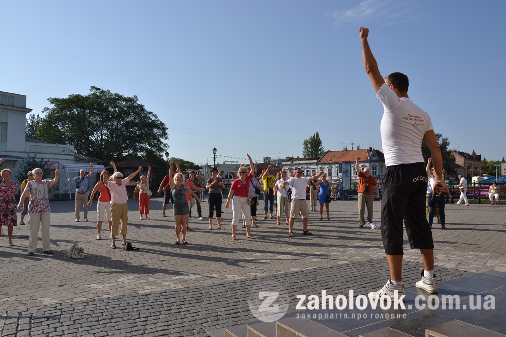 Сьогодні в Ужгороді на пл. Театральній організація "УДАРна молодь" організувала святкування Дня Незалежності. Зранку тривала "руханка", до якої долучилися і латвійські туристи.