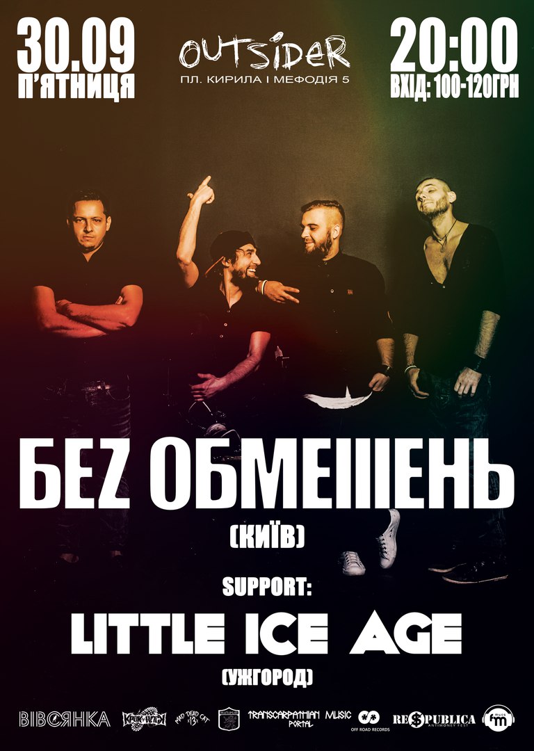 Концерт пройде за підтримки молодого місцевого колективу "Little Ice Age". Початок о 20:00. вартість квитків складатиме 100-120 гривень.