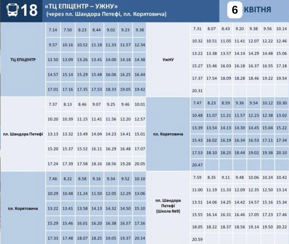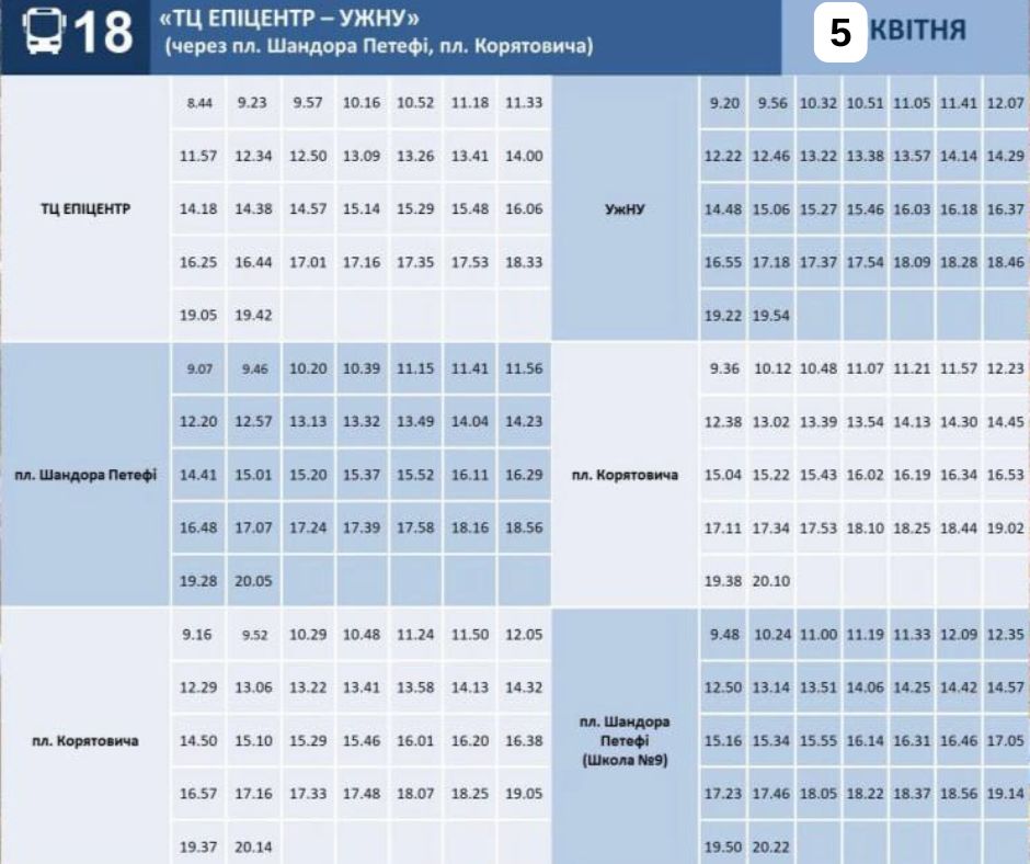 - №18 – ТЦ "Епіцентр" - УжНУ