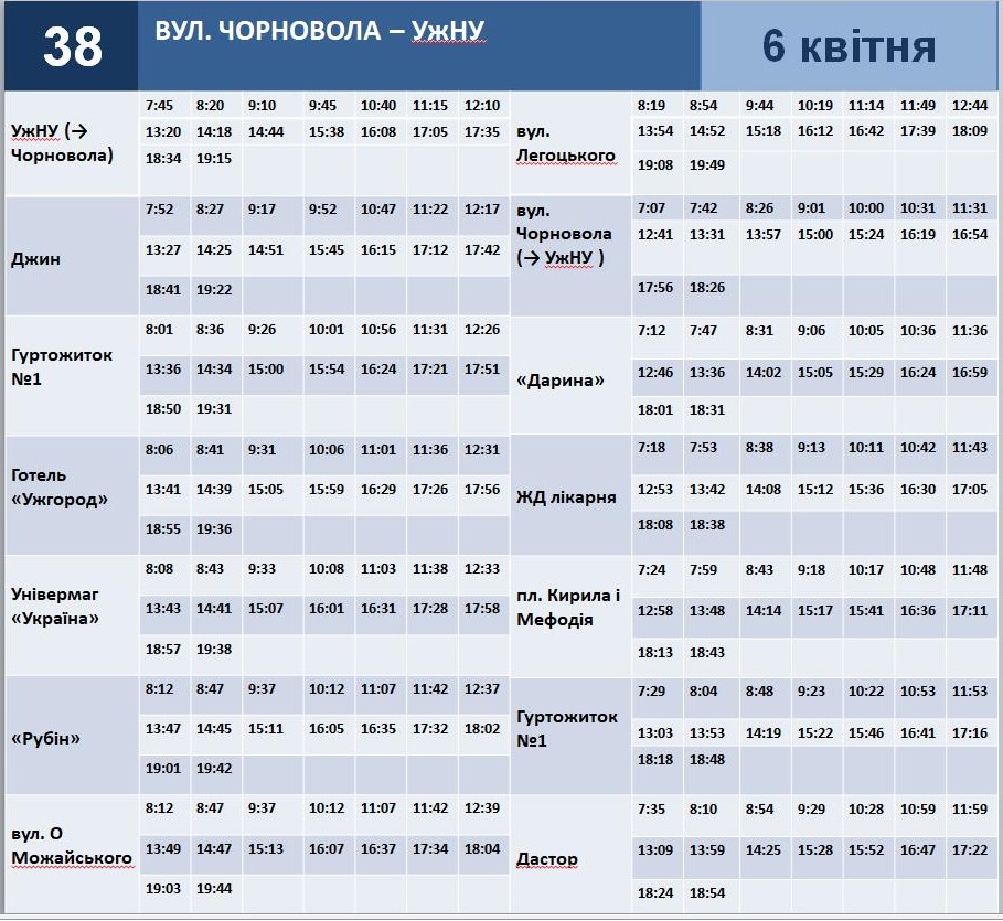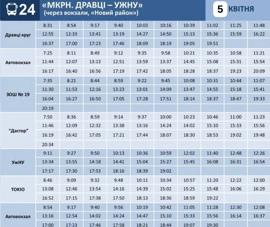 Графіки руху автобусів 5 та 6 квітня в Ужгороді: