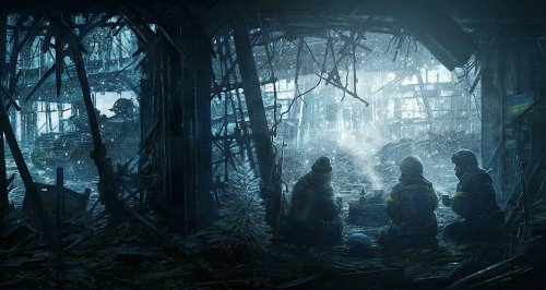 Словацький художник Радо Явор присвятив свої роботи війні в Україні. Так він привітав українських бійців з Різдвом. Робота називається Winter In Ukraine та присвячена бійцям АТО, зокрема "кіборгам" в Донецькому аеропорту, - пише Захід.нет.