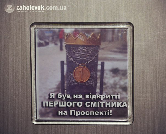 Всім, хто відвідав гумористичний захід на згадку про цей історичний момент для піщоходів проспекту Свободи, подарували магнітики з написом: «Я був на відкритті першого смітника на Проспекті».
