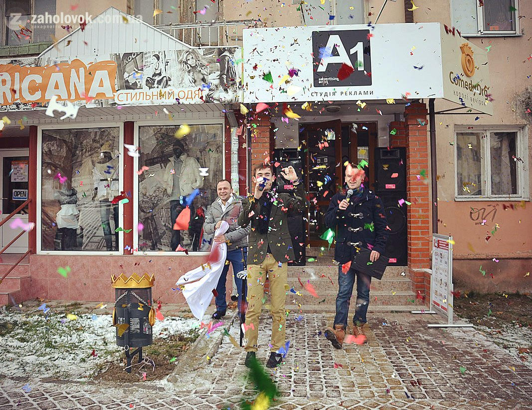 Ужгородська агенція організації свят - королі вечірок «Comedy Org» відкрили перший смітник на проспекті Свбоди (поруч з студією реклами «А1»).