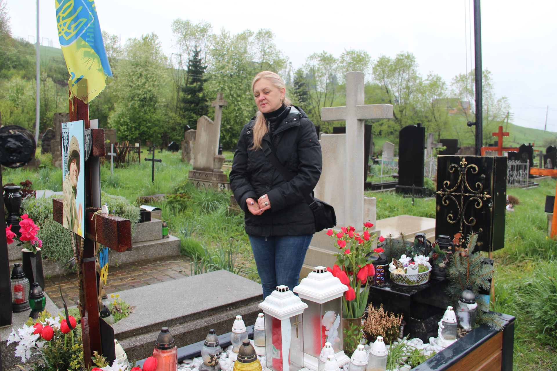 Жанна заходить у квітковий магазин. Тут її добре знають. Купує маленькі трояндочки. Червоні, тендітні й водночас сумні. Ми йдемо на цвинтар. Недалеко від центру селища на невеличкому пагорбі височіють могили. Різні-різні, але такі рідні-рідні для когось. Військова могила тут – одна. Сина Жанни. Тут розвіваються вітром прапори. Мама каже, що впізнає настрій сина по них і може попросити його трохи погратися з вітром. Поховали Андрія саме тут, бо звідси починається маршрут на одну з його улюблених вершин – гору Костирівку.