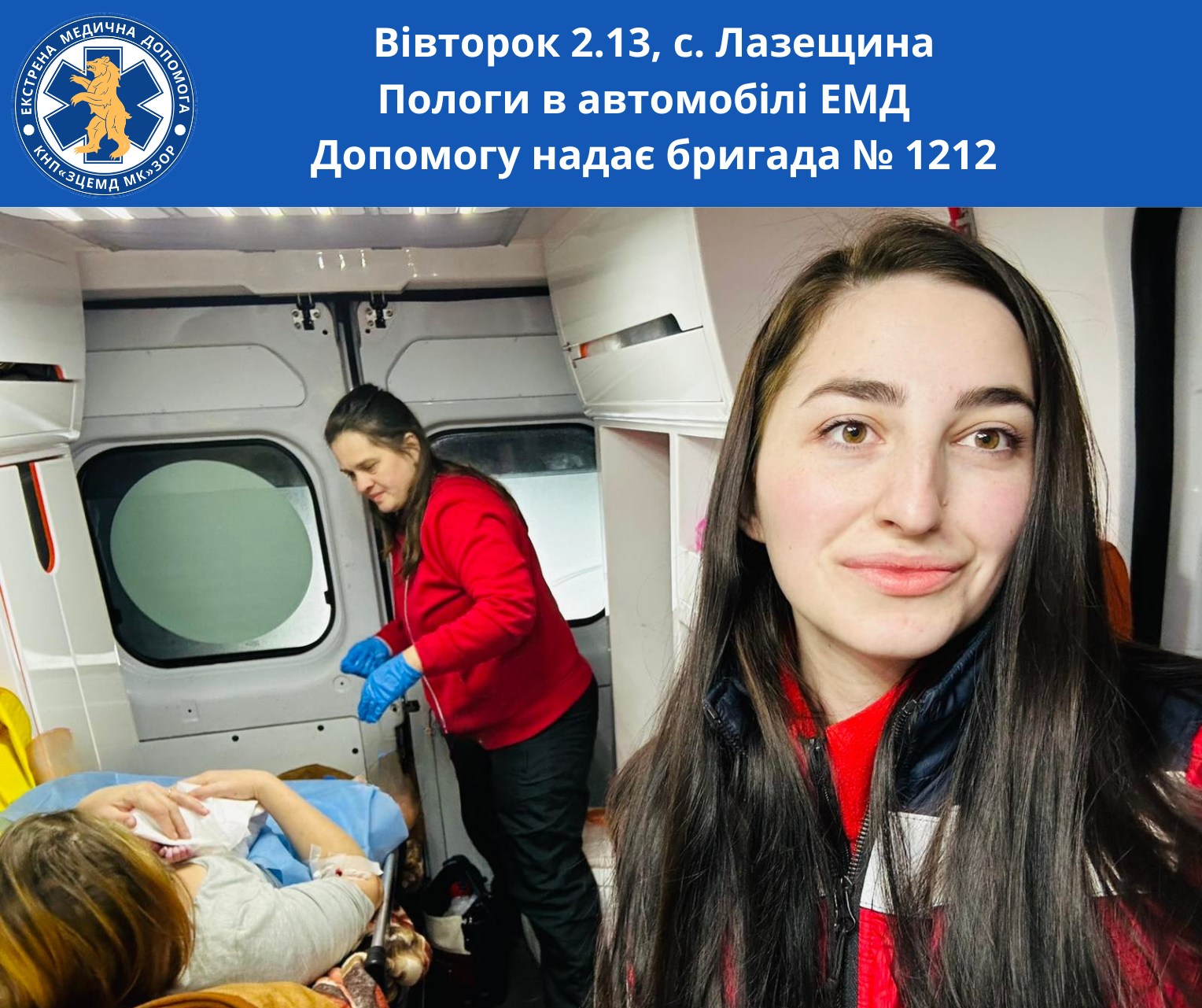 Посеред ночі на лінію «103» надійшов виклик із села Лазещина: у 31-річної жінки розпочалися пологи. Уже за 6 хвилин бригада була поруч. Пологи розвивалися стрімко – відійшли води. Жінка розповіла, що попередні троє пологів також були швидкими.