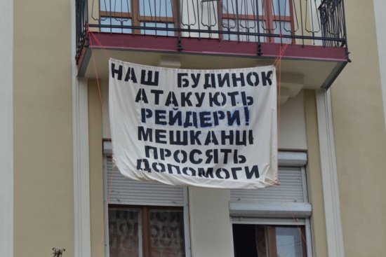Слова "Відчай і благання про допомогу на фасаді старовинного будинку", журналіст супроводив світлиною. На фото зображений плакат, який мешканці будинку 13 на площі Петефі вивісили днями.