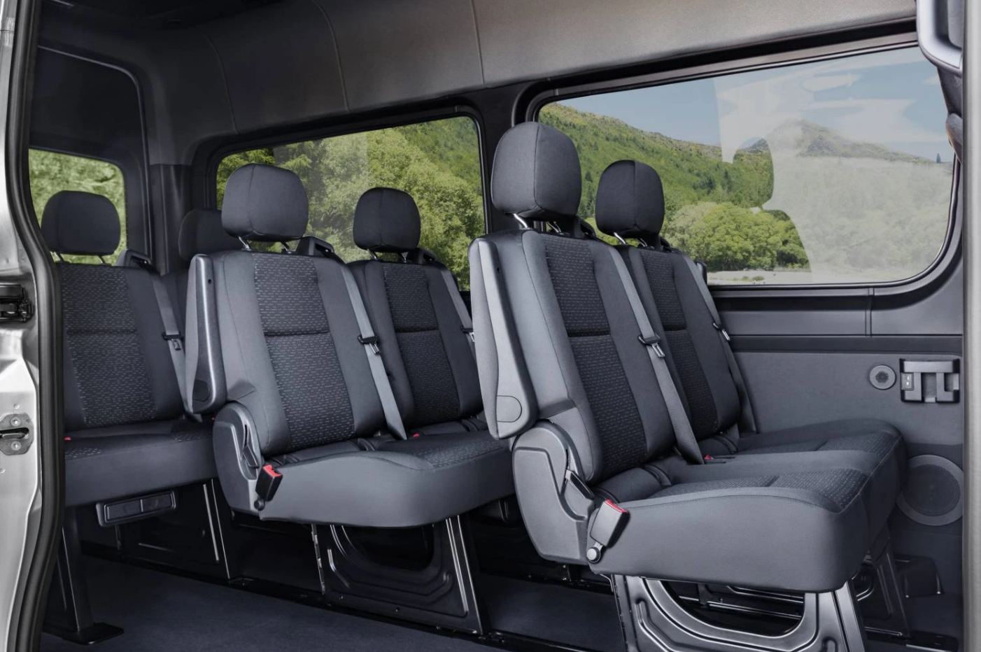 Салон мікроавтобусів Mercedes-Benz можна адаптувати під конкретні завдання. Сидіння легко складаються, знімаються або розташовуються у форматі «один навпроти одного». У V-Class реалізовані функції преміум-рівня: багатозонний клімат-контроль, підсвічування з 64 кольорами, акустика Burmester®. Sprinter Tourer пропонує варіанти компоновки від 8 до 20 місць, а також місткий багажний відсік для валіз чи обладнання.