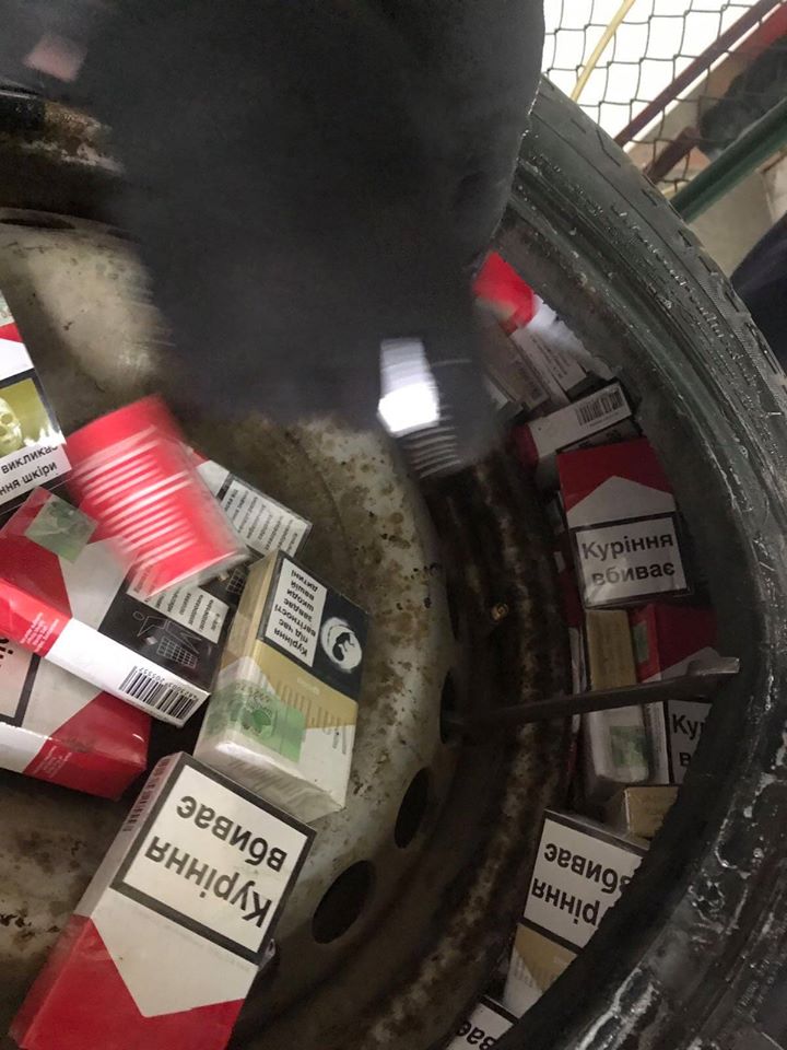 При проведенні поглибленого митного огляду, в запасному колесі до автомобіля, що знаходилось в багажному відсіку, митники виявили приховані 216 пачок цигарок з акцизними марками України.