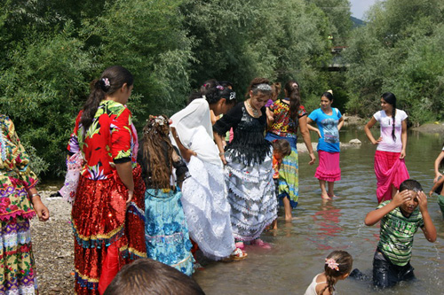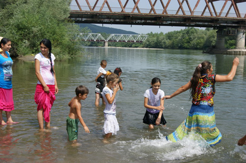 Після занурення у воду ритуал продовжився на березі просто неба. Стоячи на колінах, охрещені проказували молитви та отримували благословення своїх пасторів. Проповіді, молитви та радісні піснеспіви звучали російською, угорською, румунською та ромською мовами.