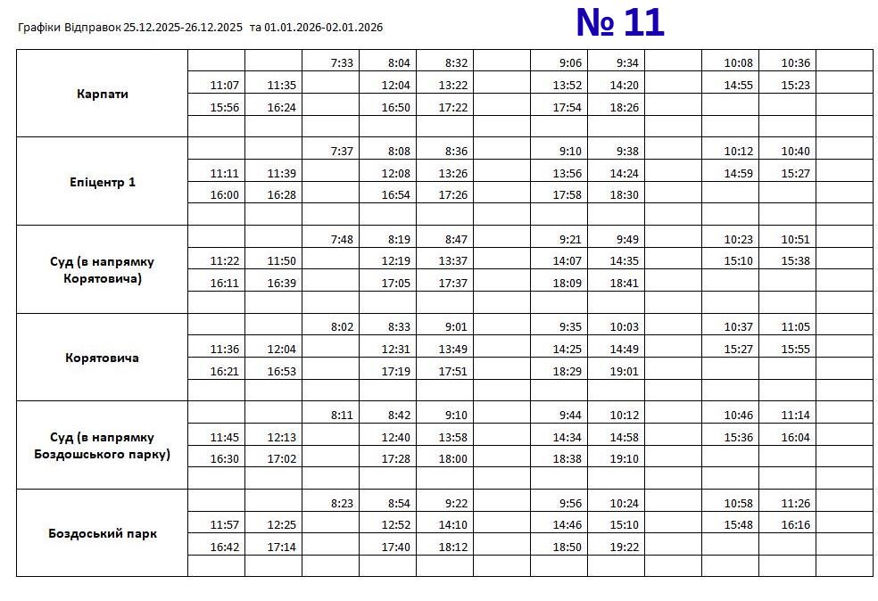Актуальні графіки руху автобусів оприлюднили в Ужгородській міській раді у четвер, 25 грудня.
