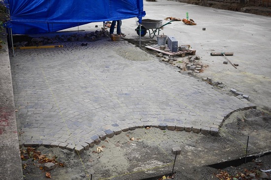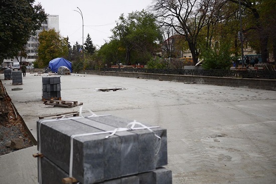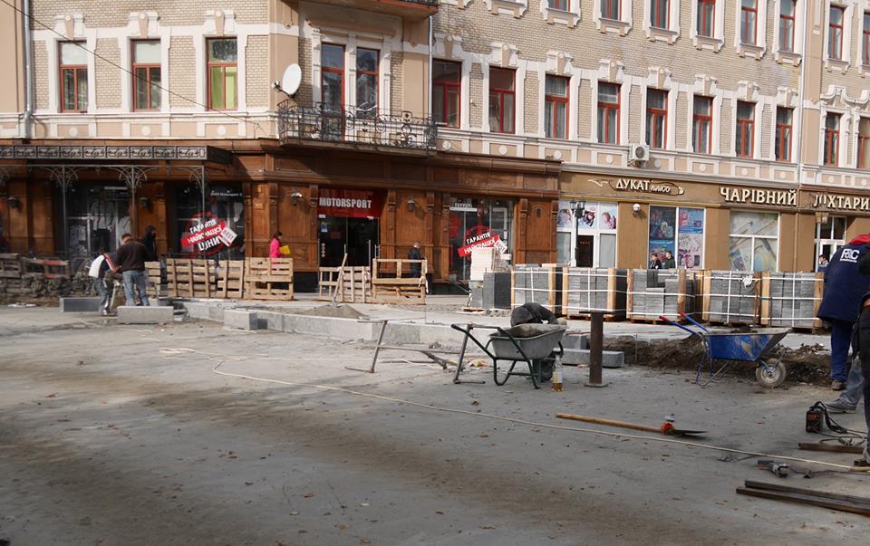 Наближаються до завершення роботи у пішохідній зоні, також працівники підрядної організації після бетонування дорожнього покриття розпочали викладати бруківку, якою буде вимощено всю проїжджу частину на площі.