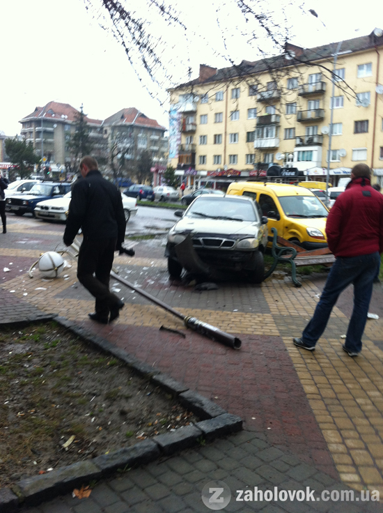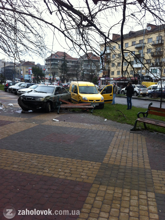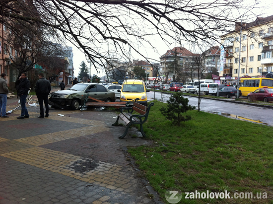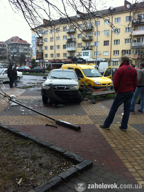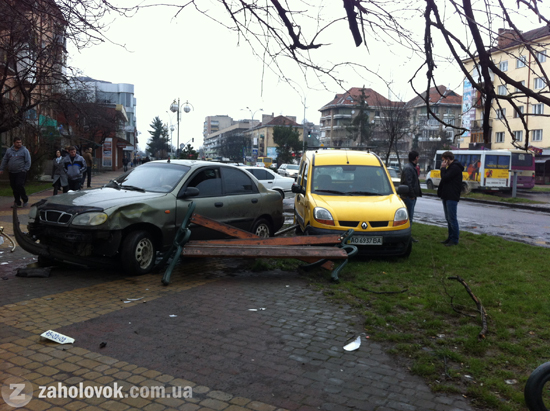Автомобілі вилетіли на тротуар та вщент розбили лавицю і ліхтар.