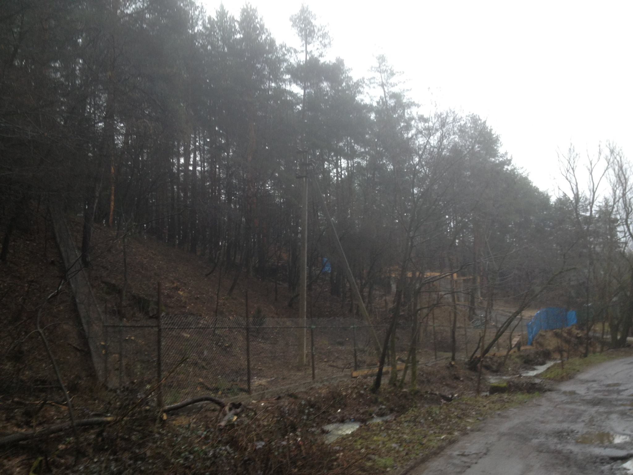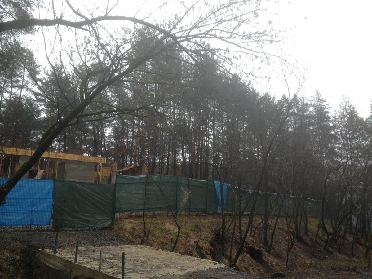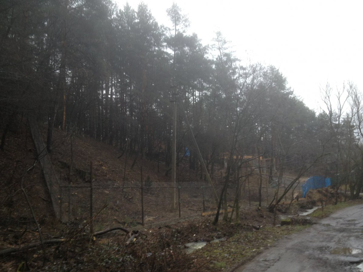 На фото видно, яке «газдування» наразі спостерігається у лісі – частину лісу огороджено металевою сіткою, багаторічні сосни порізані на дрова, йде активне будівництво.
