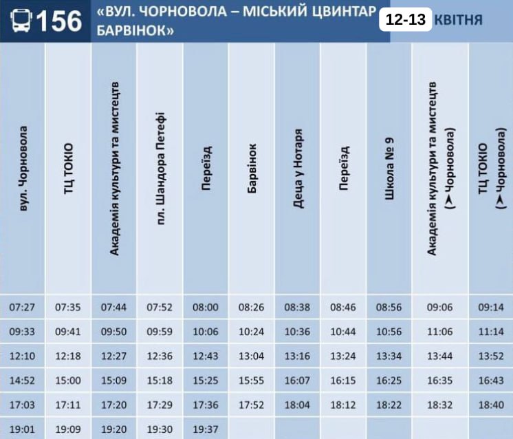 - №156, вул. Чорновола – Міський цвинтар Барвінок