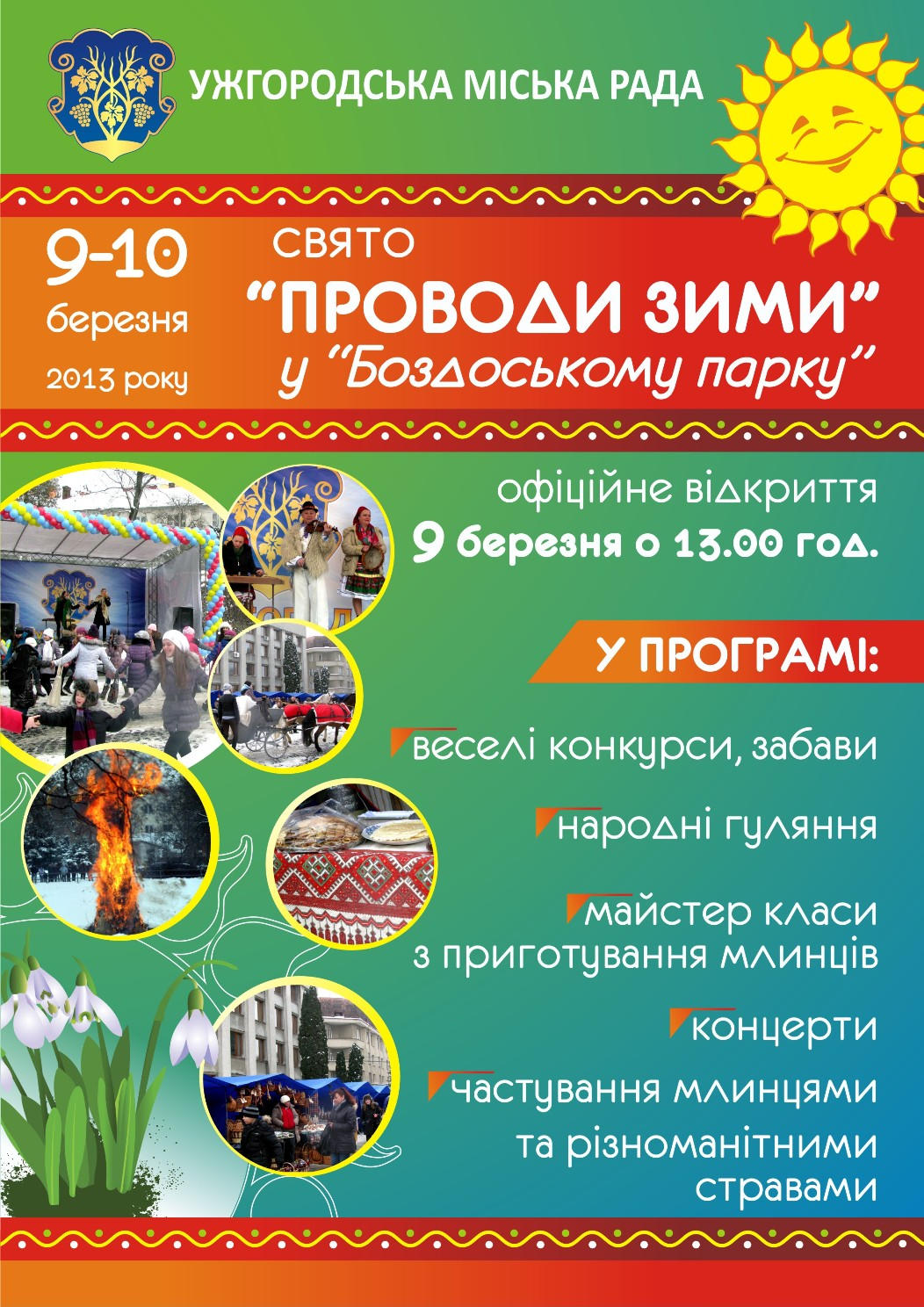 9-10 березня в Ужгороді відбудеться яскраве міське свято «Проводи зими». Обіцяють велику кількість млинців, цікавих розваг та гарного настрою.