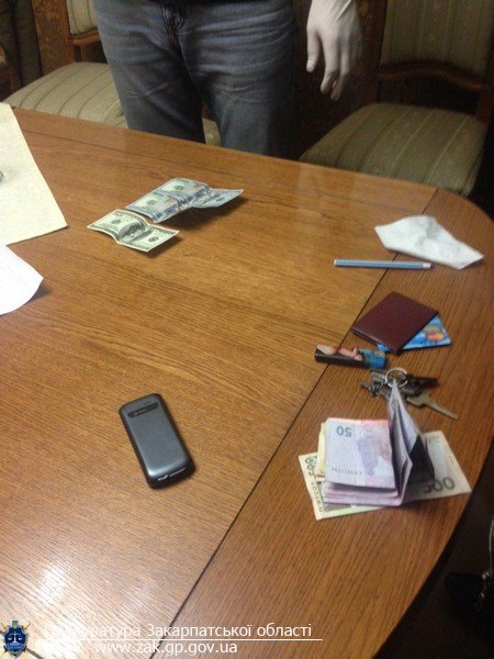 Слідчими прокуратури Закарпатської області спільно з працівниками УСБ України в Закарпатській області затримано службовця управління контролю за охороною та використанням земель Державної сільськогосподарської інспекції в Закарпатській області під час одержання 300 дол США неправомірної вигоди.