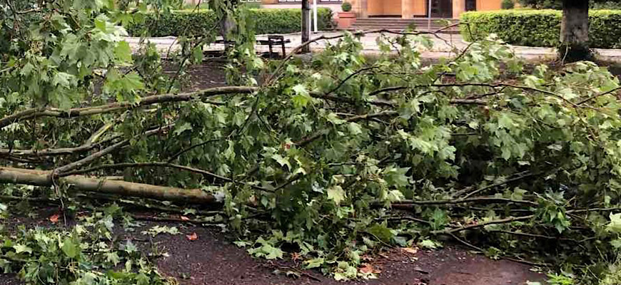 Вчорашні пориви шквалистого вітру не витримали щонайменше два дерева.