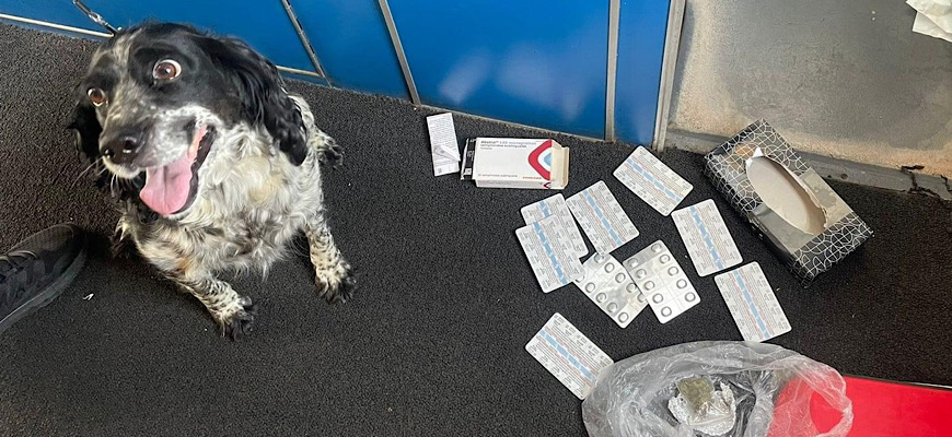 У ході перевірки одного з вагонів спрацював службовий собака, навчений на пошук наркотичних речовин. Прикордонний наряд оглянув місце спрацювання та знайшов у туалеті пасажирського вагона упаковку медичного препарату наркотичної дії «Abstral» і речовину характерного сіро-зеленого кольору, схожу на марихуану. Їх намагалися приховати в упаковці з-під гігієнічних серветок, яку помістили у сміттєвий бак.