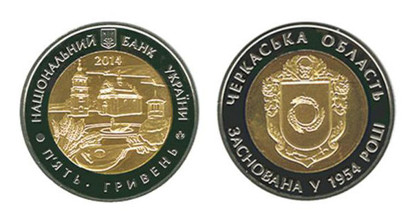 Прес-служба управління Національного банку України в Закарпатській області повідомляє, що Національний банк України ввів в обіг 3 січня 2014 року пам’ятну монету номіналом 5 гривень «60 років Черкаській області», яка присвячена мальовничому козацькому краю, що розкинувся на берегах Дніпра, батьківщині Богдана Хмельницького і Тараса Шевченка.