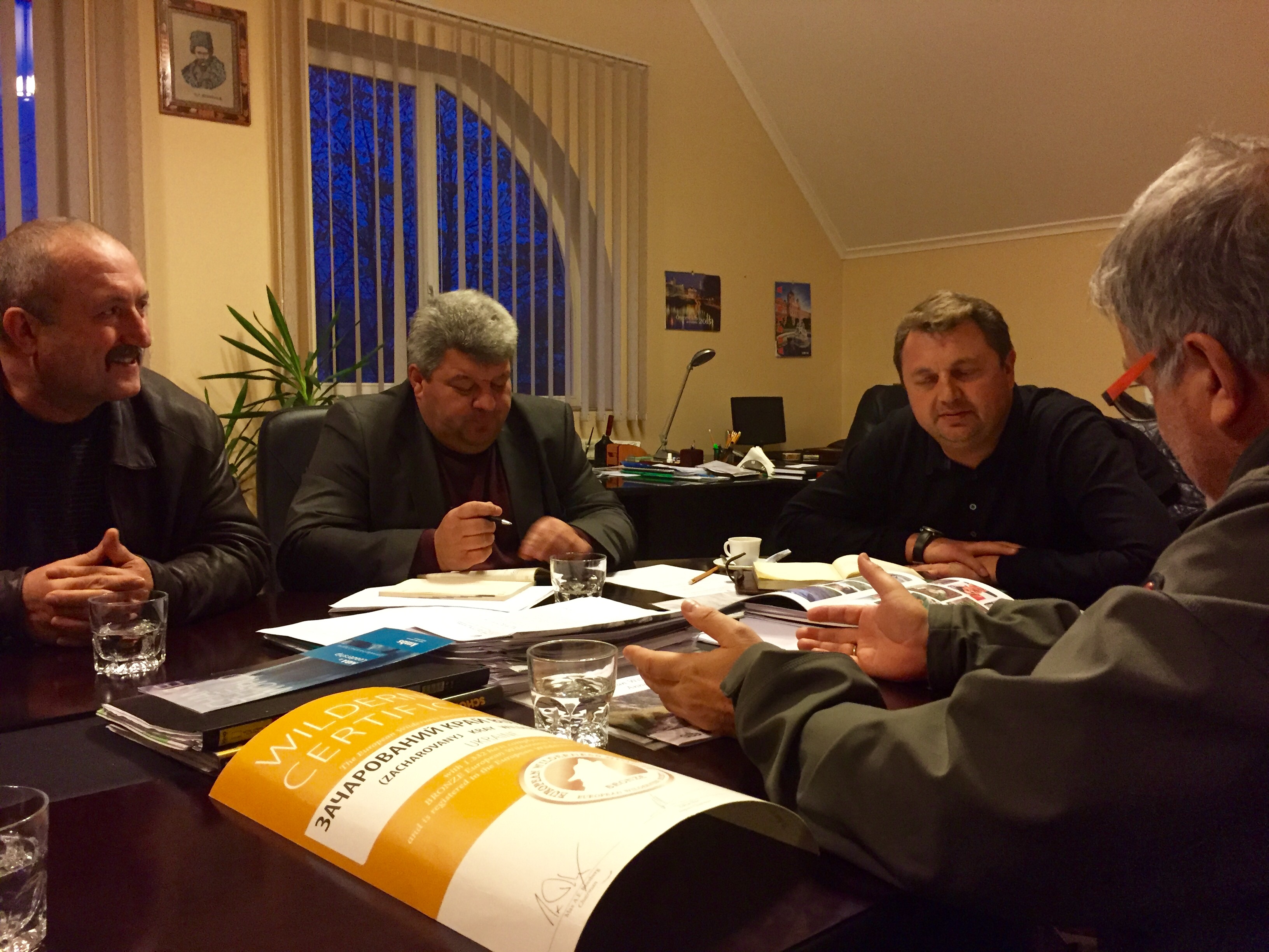 23 листопада менеджери Європейського товариства дикої природи (European Wilderness Society, EWS), Макс Россберг та Анні Хеннінг, відвідали Ужгород. Одною з цілей цього візиту були зустрічі з обласними керівниками (Головою обласної ради Володимиром Чубірко, начальником управління лісового та мисливського господарства Валерієм Мургою, начальником Управління туризму та курортів Закарпатської ОДА Денисом Маном та зацікавленими спеціалістами.