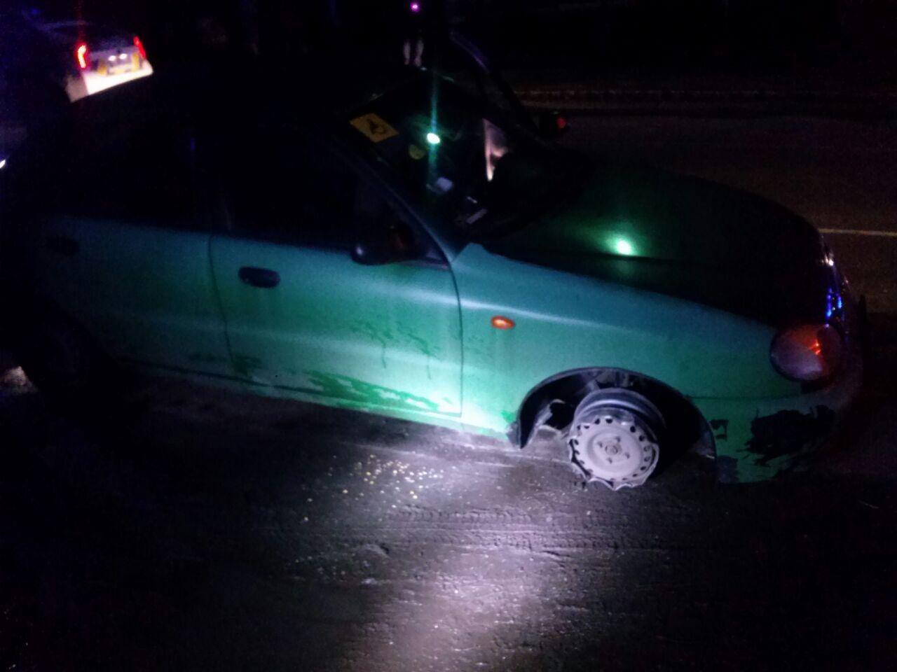 Ужгородські патрульні почали переслідування. Дорогою у переслідуваного розірвалося переднє праве колесо та навіть це не зупинило його, і автівка продовжувала рух, створюючи небезпечну ситуацію.