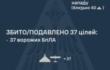 Протиповітряною обороною збито/подавлено 37 ворожих БпЛА