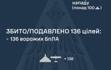 Повітряними Силами України збито/подавлено 136 БпЛА