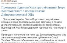 Президент Петро Порошенко задовільнив прохання Ігоря Коломойського про відставку з посади голови Дніпропетровської обласної державної адміністрації.
