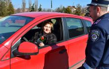 Кожна пані за кермом одержала квітку з вітальною листівкою.