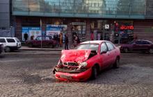 Як свідчать очевидці події, червоний Lanos стоїть прямо посеред площі Жупанатської.