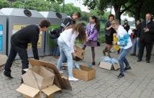 На набережній Незалежності в Ужгороді розмістили три сучасні контейнери єврозразка, у які діти й дорослі вчилися викидати відходи – окремо картон, папір, пластмасу і скло.