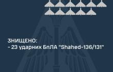 Протиповітряною обороною знищено 23 ударних БпЛА в межах Одеської, Миколаївської, Полтавської, Дніпропетровської, Харківської областей.