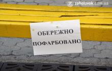 У центрі Ужгорода по вулиці Корзо йде підготовка до літнього сезону - фарбують лавочки. На кожній з них є попереджувальна табличка «Обережно пофарбовано».