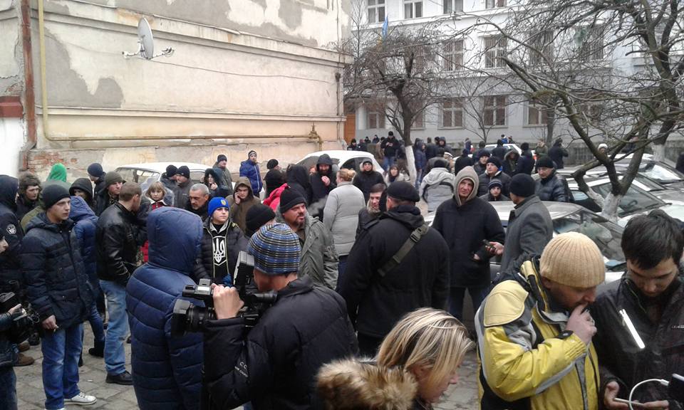 Народ з депутатами зараз перебуває під стінами СІЗО, який знаходиться через дорогу біля апеляційного суду.