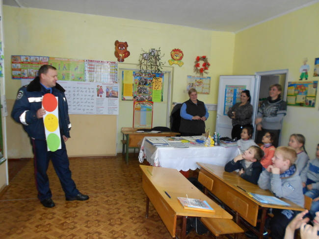 Інспектор відділення державної автомобільної інспекції району Руслан Дюгованець розповів маленьким школярам цікаву казку про основні правила, яких слід дотримуватися на дорозі, під час проїзду в маршрутних таксі та легкових автомобілях. А взимку – це ще й дотримання правил особистої безпеки під час катання на санчатах та лижах. Міліціонер багато цікавого та нового розповів учням про знайому їм «зебру» та дорожній знак «Пішохідний перехід». Дітлашня пообіцяла, що ніколи не переходитиме дорогу у невстановленому місці і з обережністю кататиметься на санчатах.